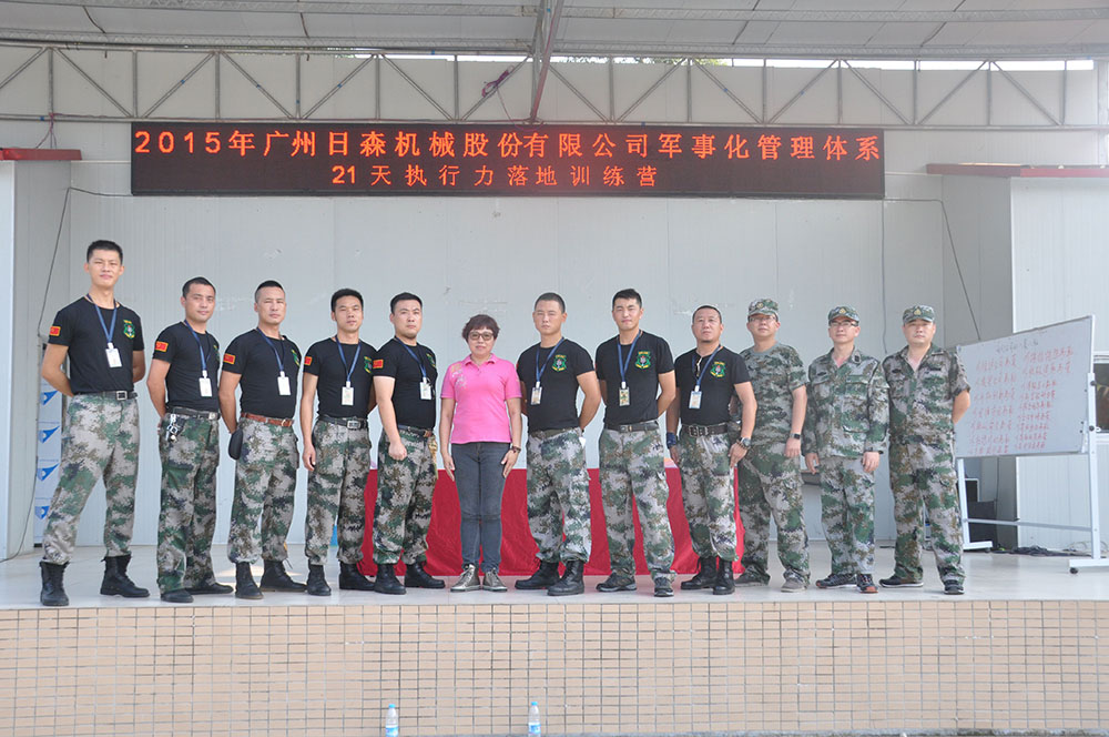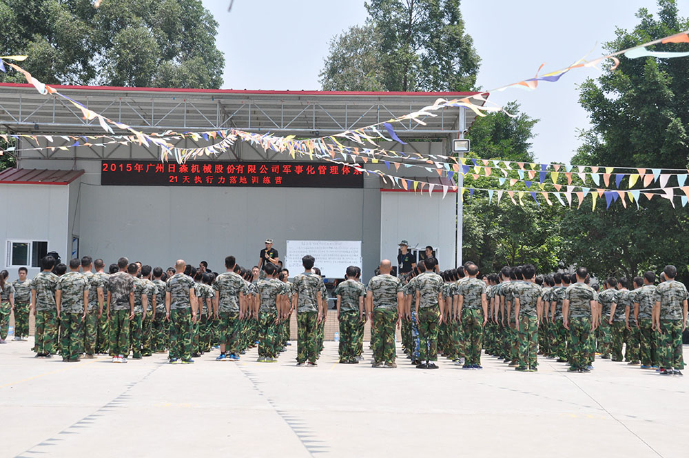 2015年8月7、8日,日森公司在番禺舉行了為期兩天一夜的軍事化管理體系暨21天執(zhí)行力落地訓練。
